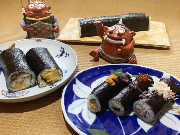 今日は節分。 福を呼び込み、縁起を担ぐために食べる 特別な巻寿司「恵方巻」 昔はこんな風習、無かったなあ〜と思いつつ、 今年もラディッシュさん、 すし処瀬戸さんの「恵方巻」を味わいます。 うつわ:泰山窯・福珠窯・梶原妙子さん 鬼さん:童工房