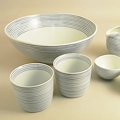 京都で7年間修業し、作風には色調や絵柄に雅なおもむきが感じられます。康創窯設立後は、現代風な、シンプルでモダンな器を中心に作陶してきました。