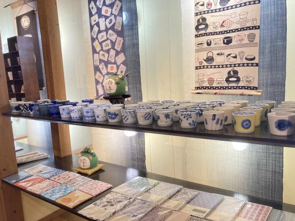 使いやすい手ぬぐいと、有田焼・波佐見焼のそば猪口を多数展示いたします。