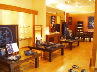 | 永六輔さんもご愛用の作務衣や藍木綿で作られた様々な作品を展示いたします。 |
